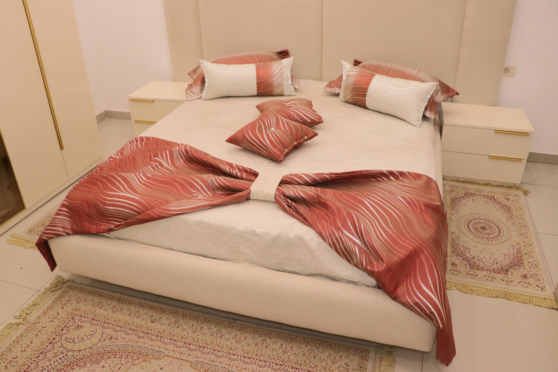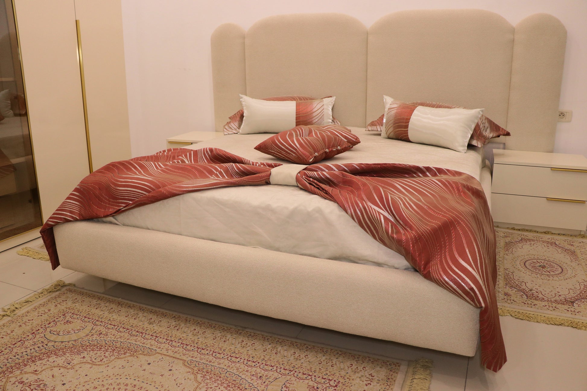 La chambre à coucher Viva allie élégance et confort grâce à son lit capitonné, offrant un design raffiné et un soutien optimal pour un sommeil réparateur. Ses lignes soignées et ses finitions de qualité en font un choix idéal pour un intérieur moderne et sophistiqué.