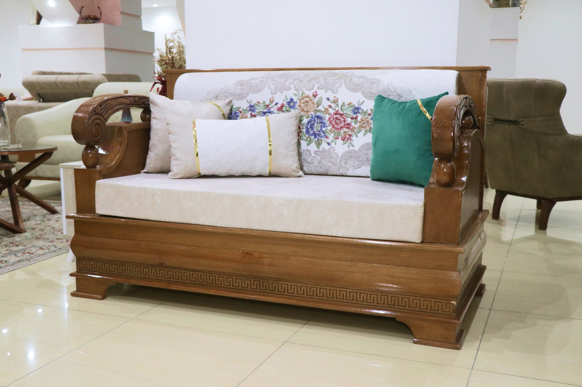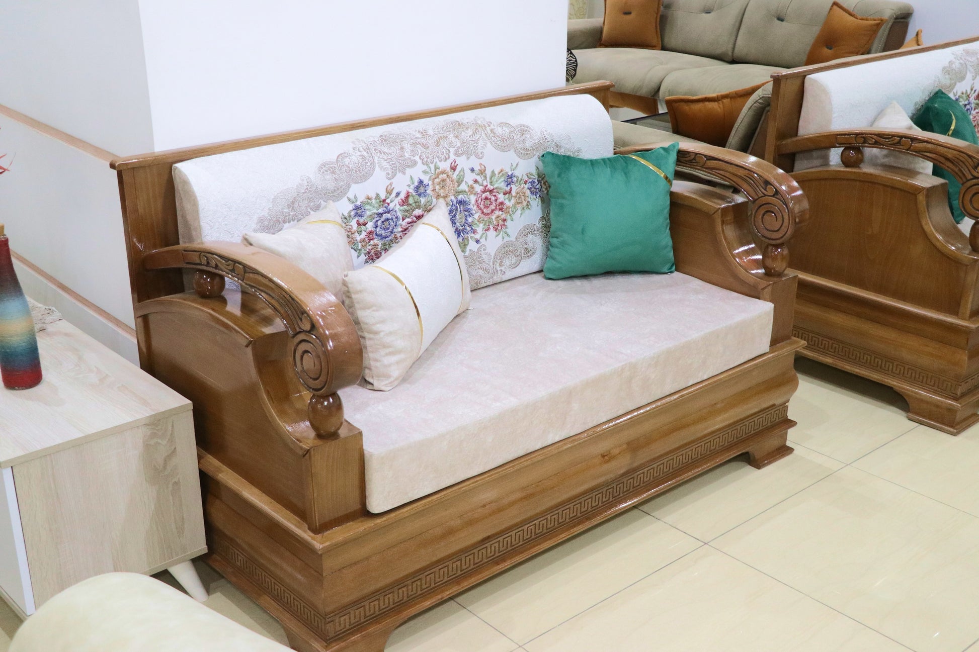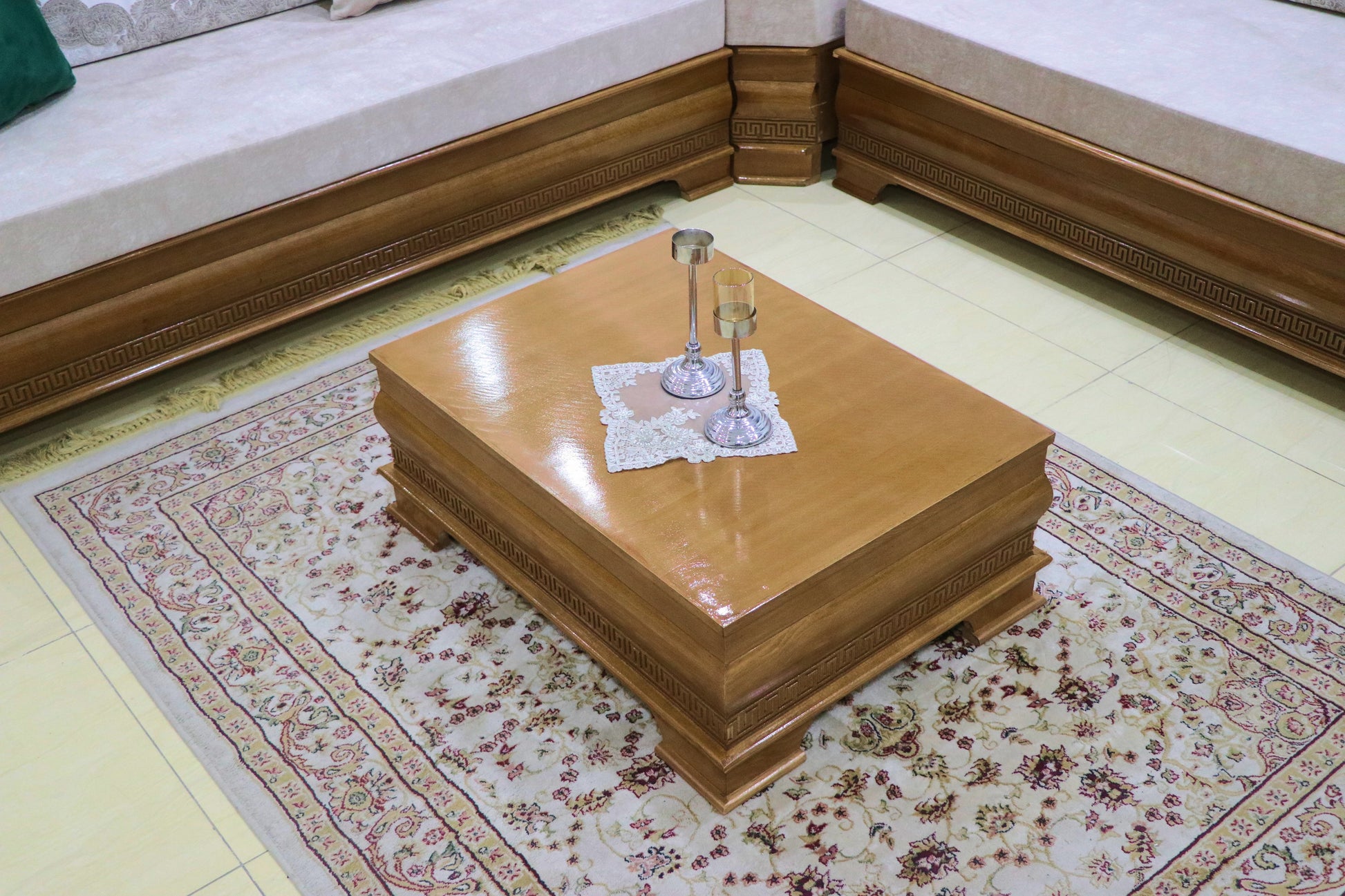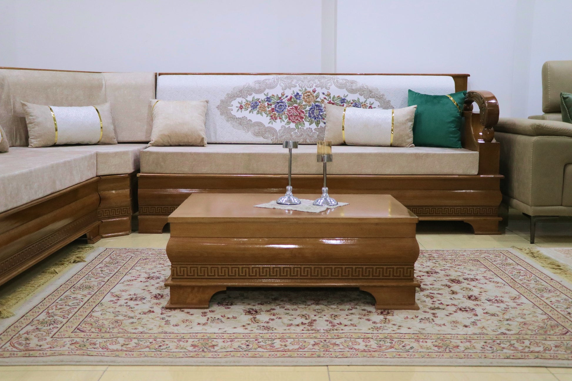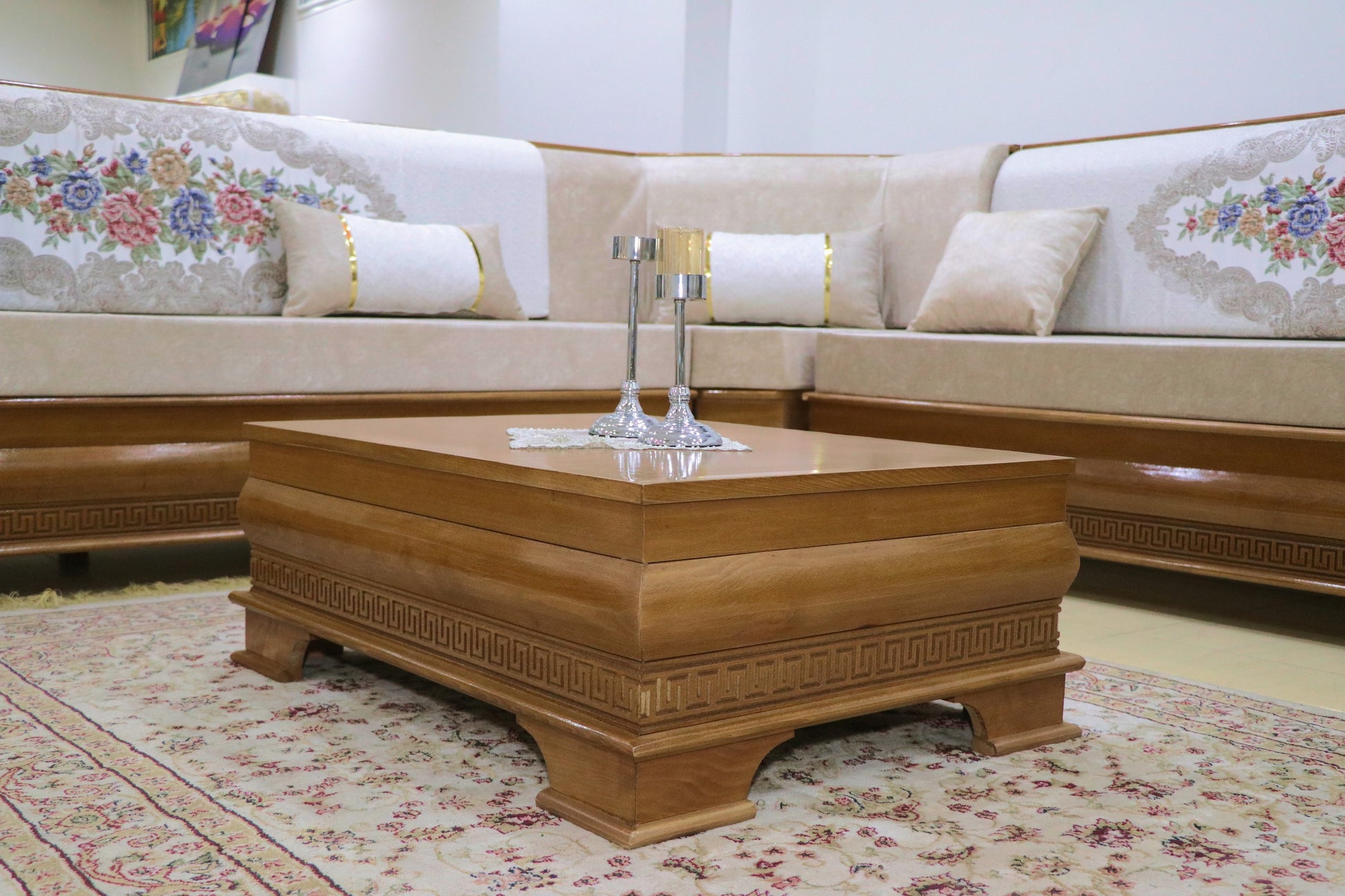 Découvrez notre salon en bois au style classique arabe, alliant élégance traditionnelle et savoir-faire artisanal. Chaque pièce est conçue avec un bois de qualité, offrant robustesse et durabilité, tout en apportant une atmosphère chaleureuse et raffinée à votre intérieur. Ce mobilier incarne l’harmonie parfaite entre design authentique et confort, idéal pour créer un espace convivial et sophistiqué.
