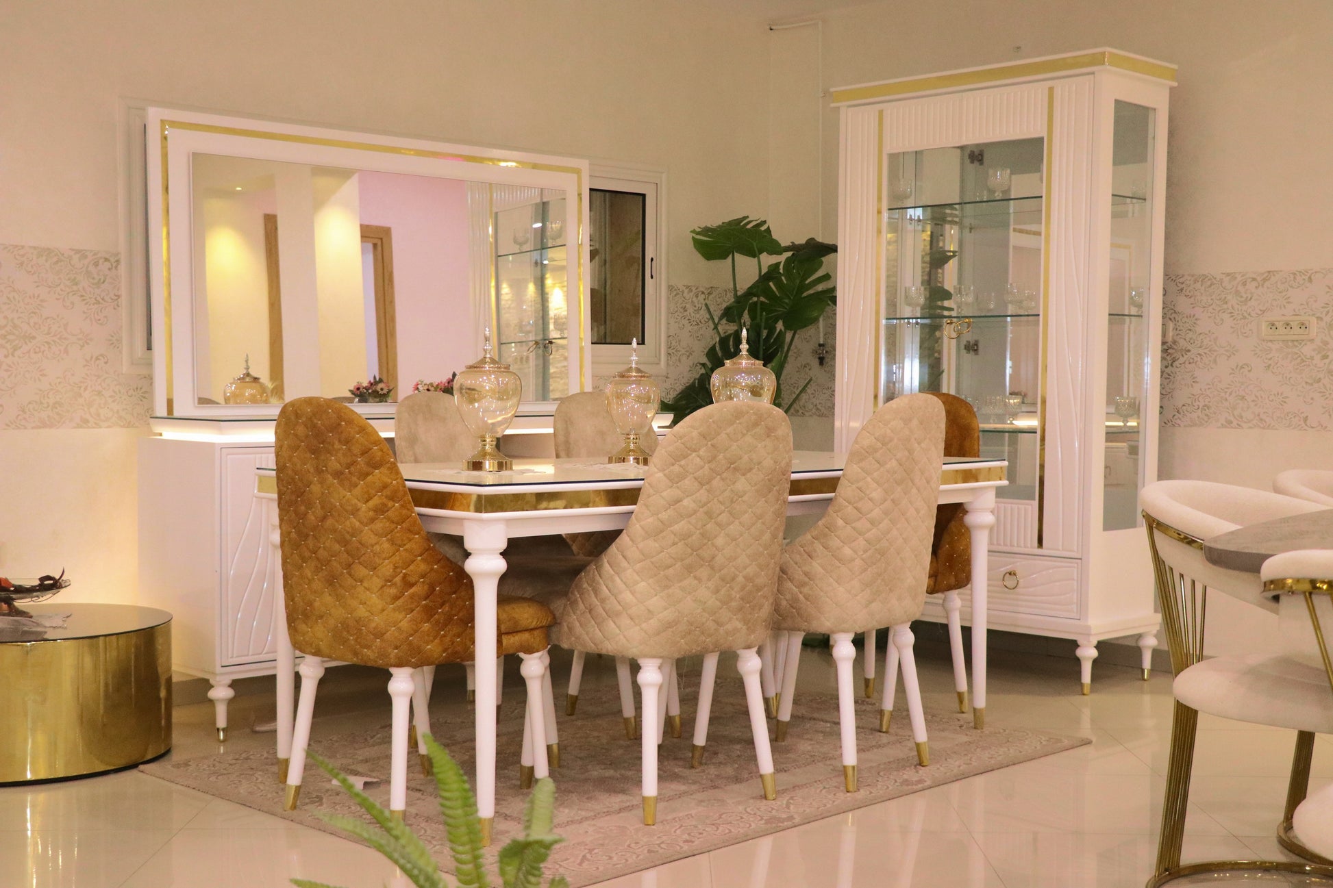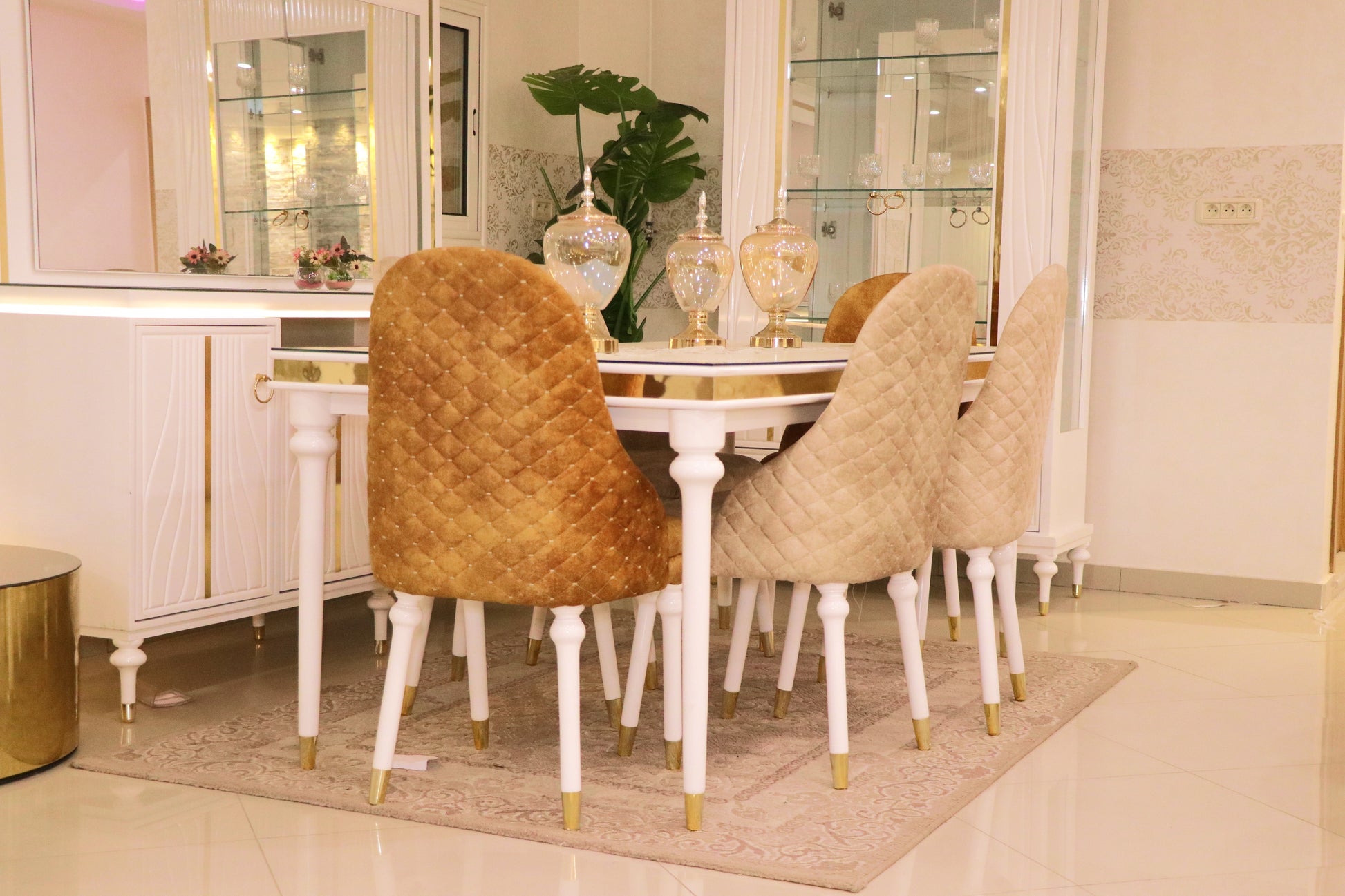 La salle à manger Deniz allie modernité et fonctionnalité avec un buffet équipé d’un éclairage LED intégré, une table élégante et six chaises en tissu anti-tache. Ce mobilier contemporain offre un espace de rangement optimisé et un confort durable, idéal pour un usage quotidien tout en apportant une touche lumineuse et sophistiquée à votre intérieur.